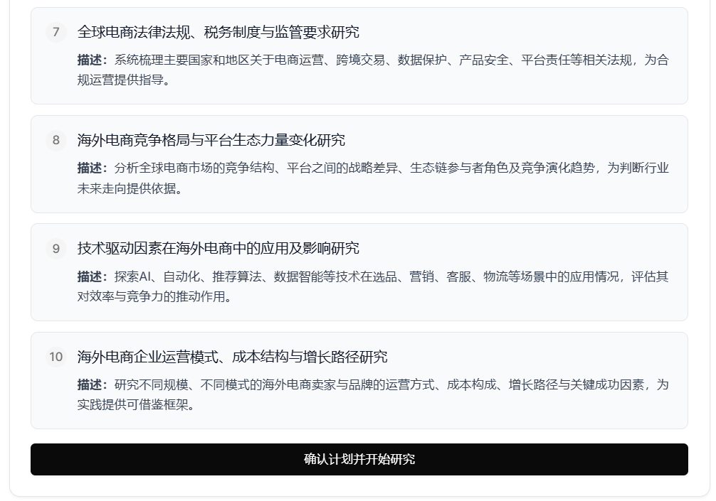 - 确认整个研究计划没有问题之后,点击“确认计划并开始研究”