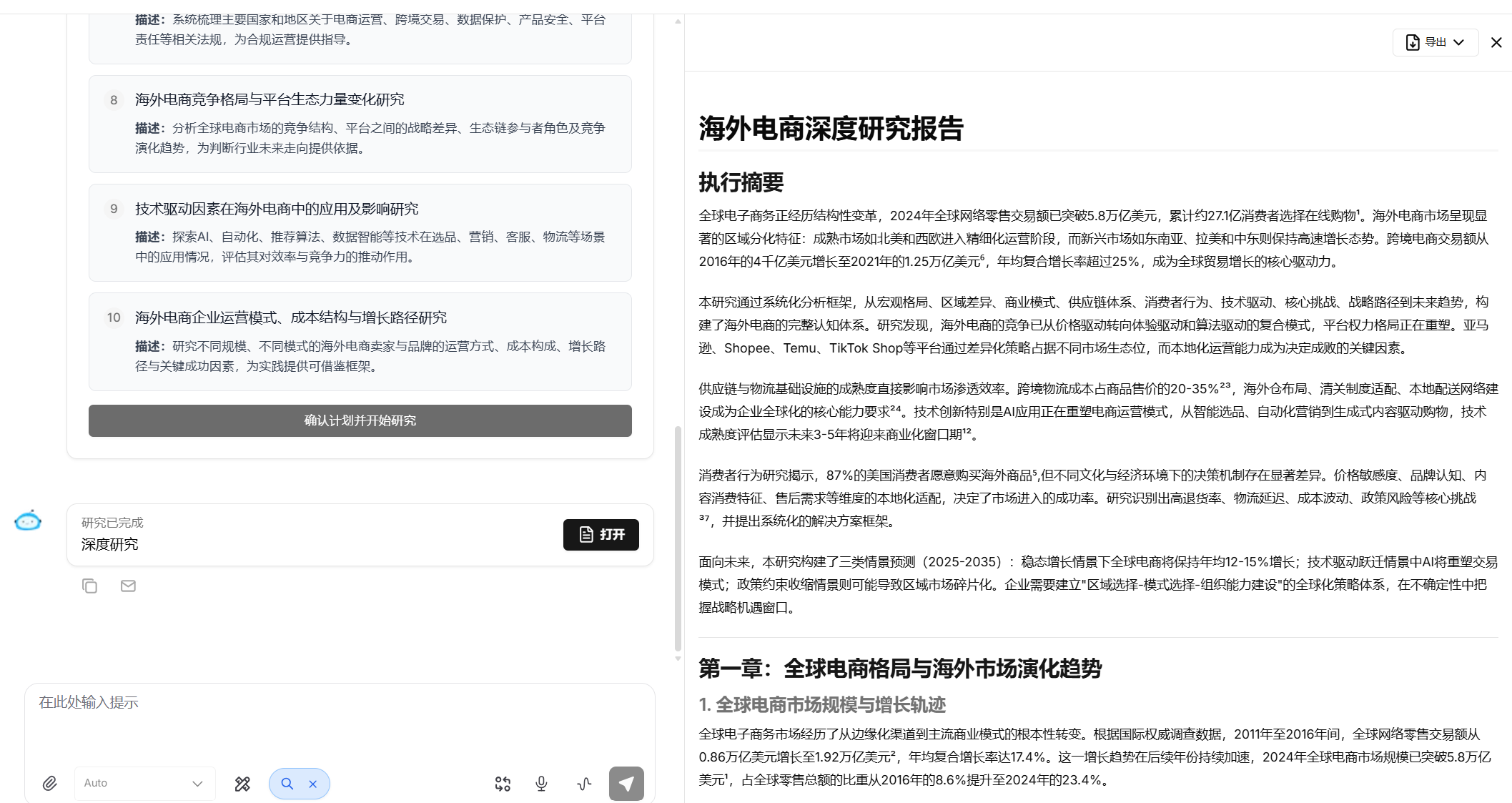 - 最终会生成一篇万字以上的全面深度研究报告。